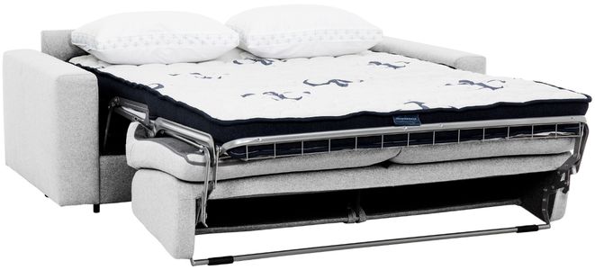The Primo™ International Stearns & Foster® Giotto Light Gray Full Sleeper Sofa with Memory Foam Mattress offers luxurious comfort and versatility. The light gray upholstery complements various room aesthetics, while the memory foam mattress ensures a restful sleep for overnight guests. Ideal for both lounging and hosting.Read More